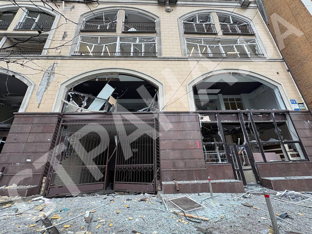 Последствия ракетной атаки в гостинице Holiday Kyiv, которая расположена в БЦ "Торонто".