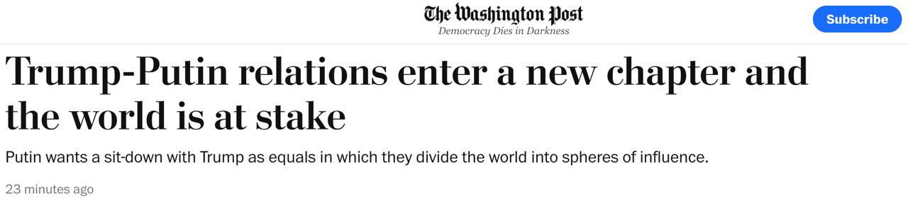 "По сути, это означает, что саммит Трампа и Путина может разделить мир на сферы влияния, при этом будет гарантировано главенство России над Украиной, Грузией и другими бывшими советскими соседями, не входящими в НАТО. Это ограничит НАТО и поставит под угрозу безопасность Европы", - считает WP.