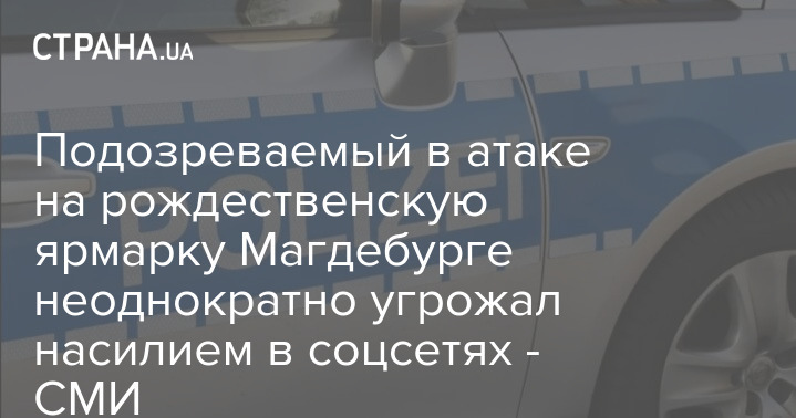 Подозреваемый в атаке на рождественскую ярмарку Магдебурге неоднократно угрожал насилием в соцсетях - СМИ