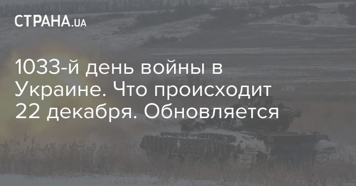 В воскресенье, 22 декабря, в Украине идет 1033-й день войны с Россией.