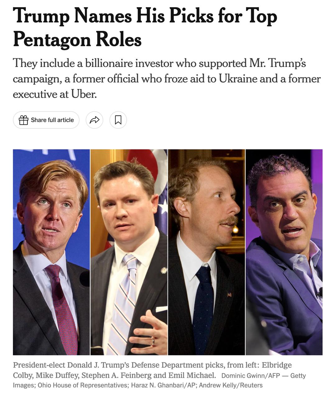 Также Трамп хочет назначить заместителем Министерства обороны по исследованиям и инжинирингу Эмиля Майкла, который в 2017 году со скандалом ушел с должности руководителя в Uber. Выяснилось, что он посетил эскорт-бар в Южной Корее в рамках деловой поездки. Также NYT пишет, что он поддерживал найм следователей для преследования журналистов, которые писали статьи с критикой компании.