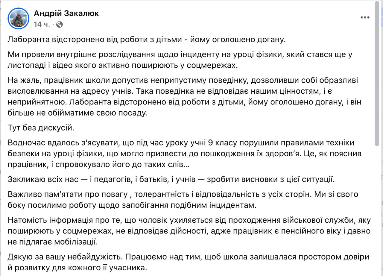 Во Львове отстранили от работы учителя, который пожелал ученикам смерти на фронте