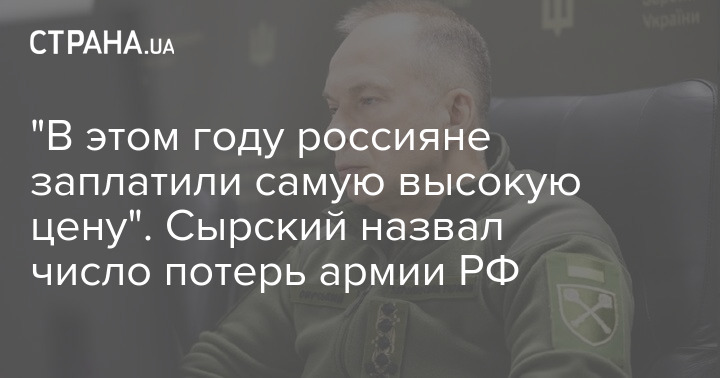 Сырский отметил, что в этом году россияне заплатили самую высокую цену с начала своего полномасштабного вторжения в Украину -  421 тысяч человек убитыми и ранеными.