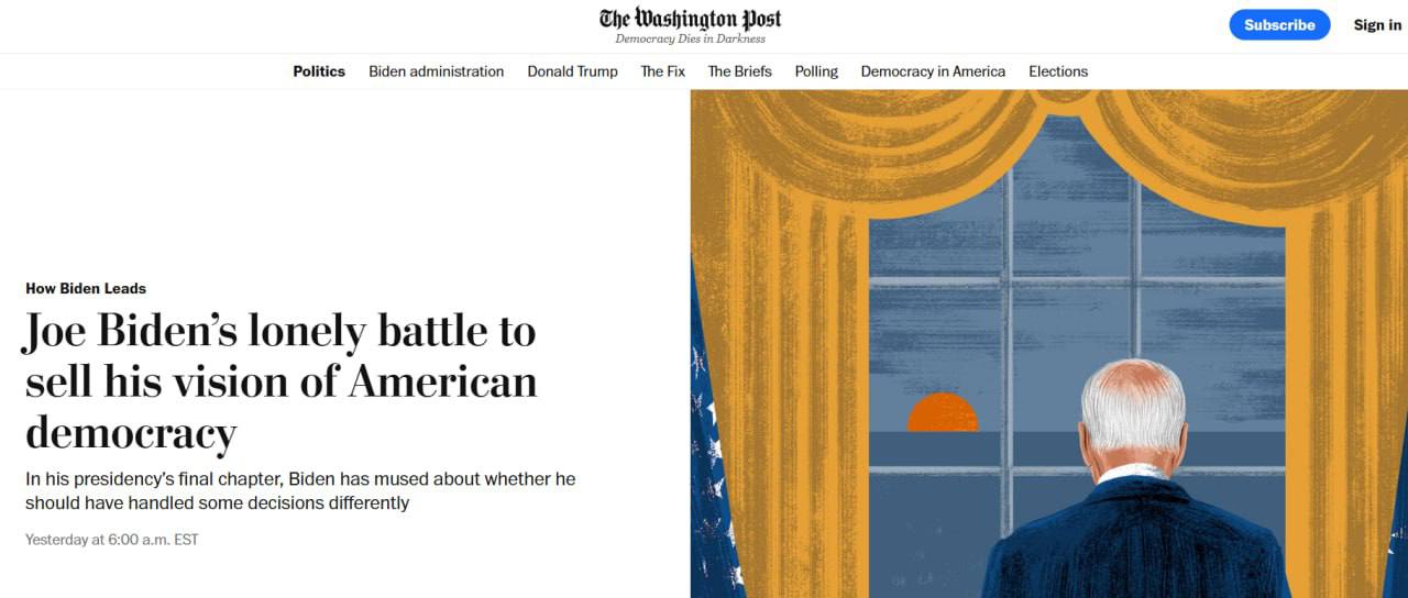 Между тем недавно газета The Wall Street Journal со ссылкой на источники писала, что уходящему президенту США Джо Байдену еще со времен предвыборной гонки 2020 года тяжело давались появления на публике из-за возраста и вызванных этим проблем со здоровьем.