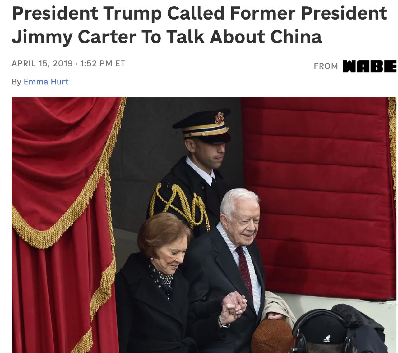 Картер, который в свое время был инициатором разрядки между Америкой и Китаем, в 2019 году написал письмо президенту Трампу, в котором изложил свой взгляд на китайскую проблематику (Трамп в то время использовал жесткую антикитайскую риторику).