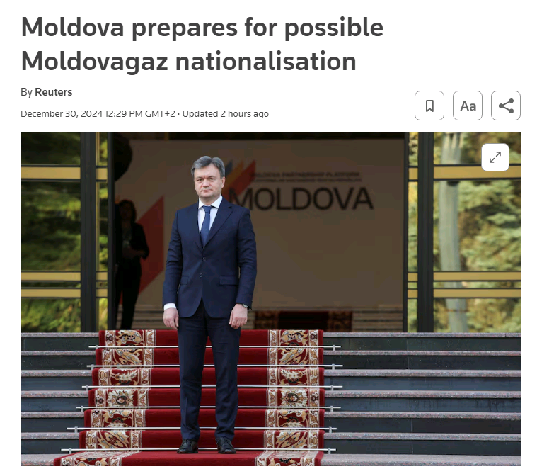 В Молдове хотят национализировать активы компании "Молдовагаз", контрольный пакет которой в 50% принадлежит российскому "Газпрому". Премьер-министр страны  Дорин Речан распорядился подготовить для этого законодательную базу.