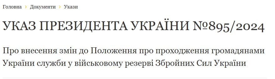 Также на сайте президента появился указ о том, что военнообязанные, не достигшие 25 лет и прошедшие базовую общевоенную подготовку или базовую военную службу, принимаются на службу в резерве с их согласия.