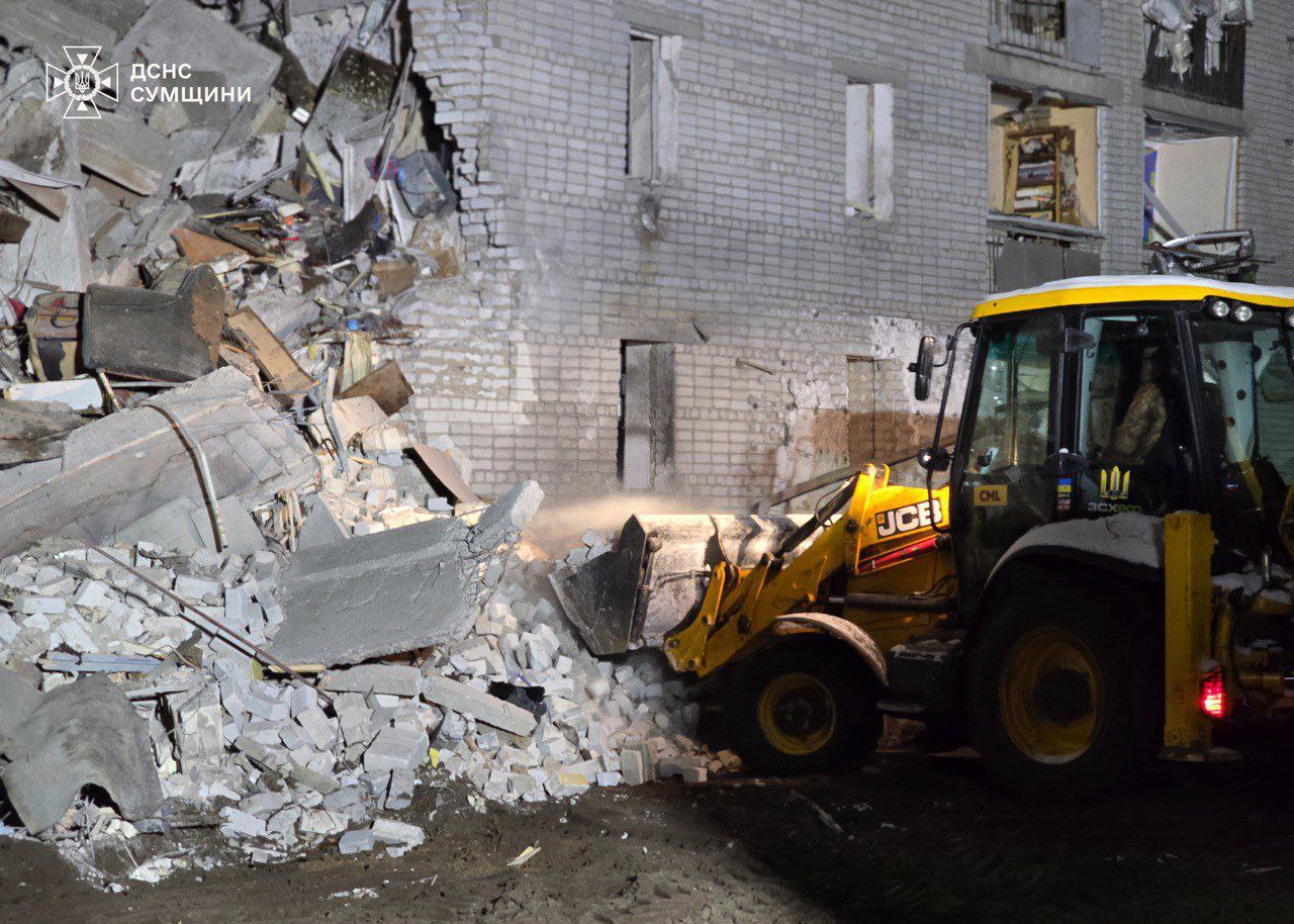 Там продолжается разбор завалов пятиэтажки. Есть более десяти пострадавших.
