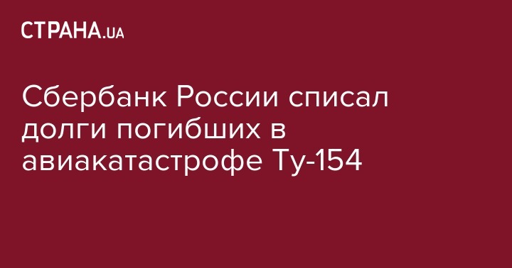Сбербанк России списал долги погибших в авиакатастрофе Ту-154