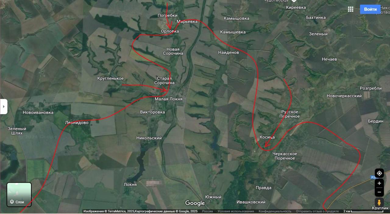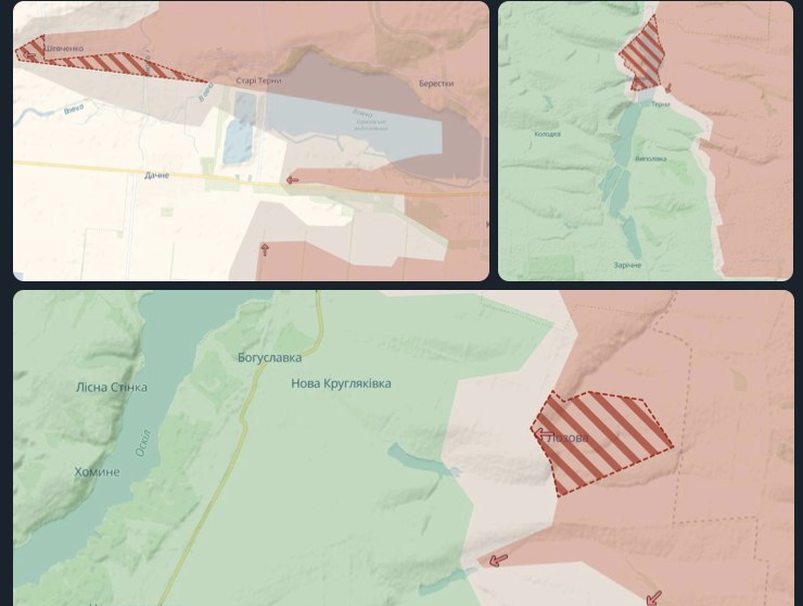 Также российские паблики утверждают, что ВСУ потеряли Русское Поречное и лежащую южнее Косицу. Если это так, то под угрозу окружения попадает Черкасское Поречное, откуда ВСУ предпринимали атаки на Бердин. Но опять же, подтверждений этим российским заявлениям нет.