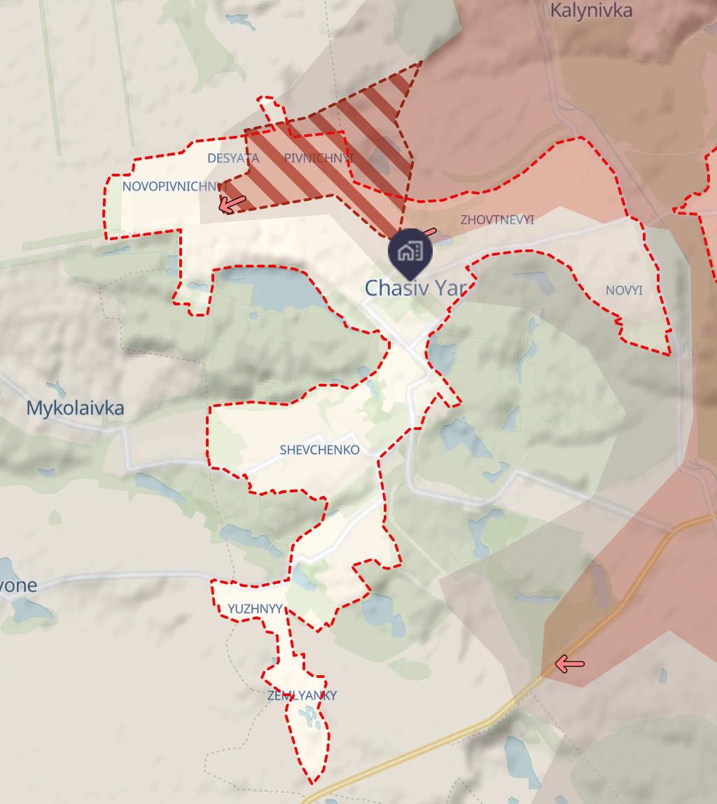 К юго-западу от Покровска россияне вышли на окраины деревни Котлино, а также в районе Успеновки и Песчаного. Вектор движения - в сторону трассы Покровск-Павлоград.