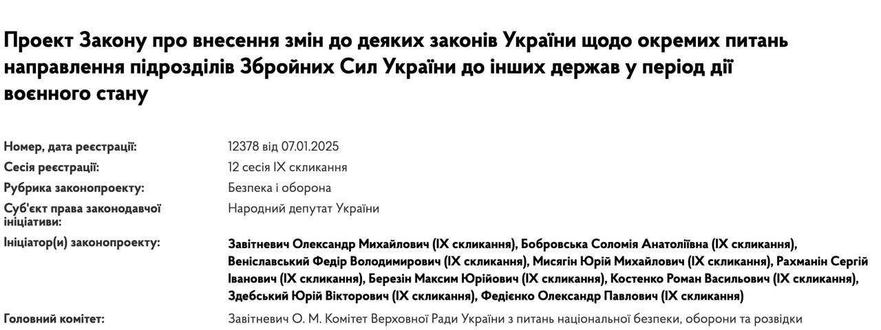 Решение об отправке ВСУ за границу принимает президент и подает в Раду законопроект, указывая численность, состав, оружие и технику таких подразделений.