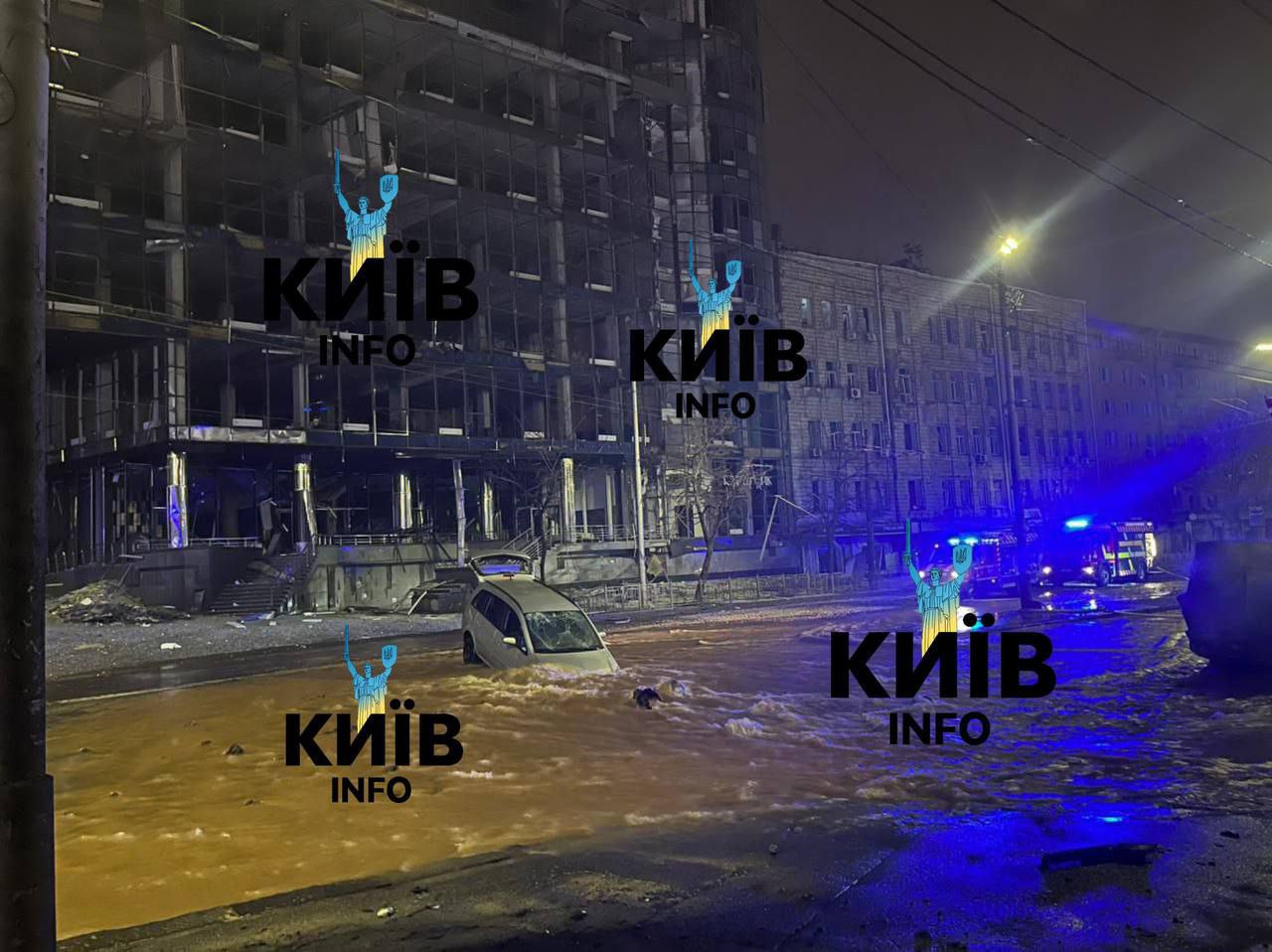 Последствия обстрела в Киеве. Фото: ГСЧС
