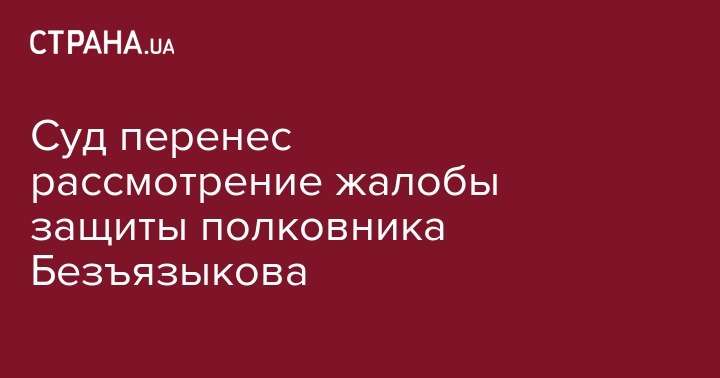 Апелляционный суд Киева перенес рассмотрение жалобы защиты полковника ВСУ Ивана Безъязыкова на решение Шевченковского районного суда Киева об избрании меры пресечения в виде содержания под стражей на 13:30 16 января 2017 года, передает УНН.