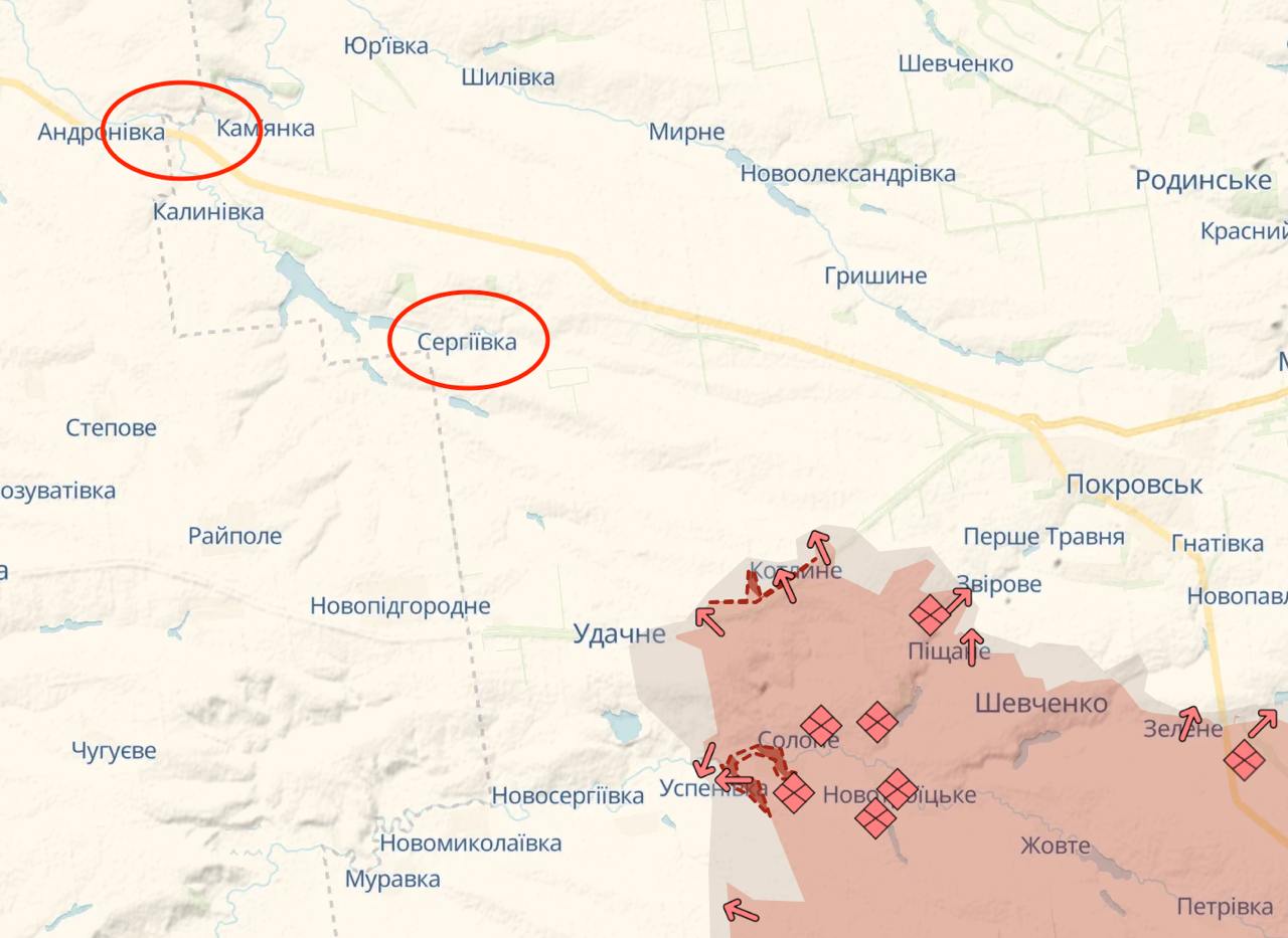 Сейчас войска РФ перерезали железную дорогу между Удачным и Котлино и наступают в сторону Сергеевки, откуда до границы Днепропетровской области около 3 км. До населенного пункта уже долетают ФПВ-дроны.