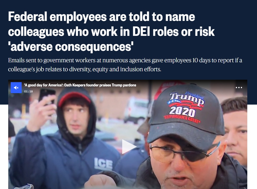 Сотрудникам было предписано уведомить Управление кадровой службы, если им "известно об изменении в описании любого контракта или должности с 5 ноября 2024 года, чтобы скрыть связь между контрактом и DEIA (Diversity, Equity, Inclusion, and Accessibility, что переводится как "разнообразие, справедливость, инклюзия и доступность" - Ред.) или аналогичными идеологиями".