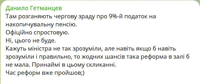 "Нет, этого не будет. Говорят, министра не так поняли, но даже если бы даже поняли и правильно, то никаких шансов такая реформа в зале не имела бы. По крайней мере, в этом созыве", – написал он.