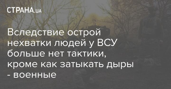 ВСУ испытывают острую нехватку личного состава, из-за чего стало невозможным применять какую-то тактику боя, а приходится просто затыкать дыры там, где они образуются.