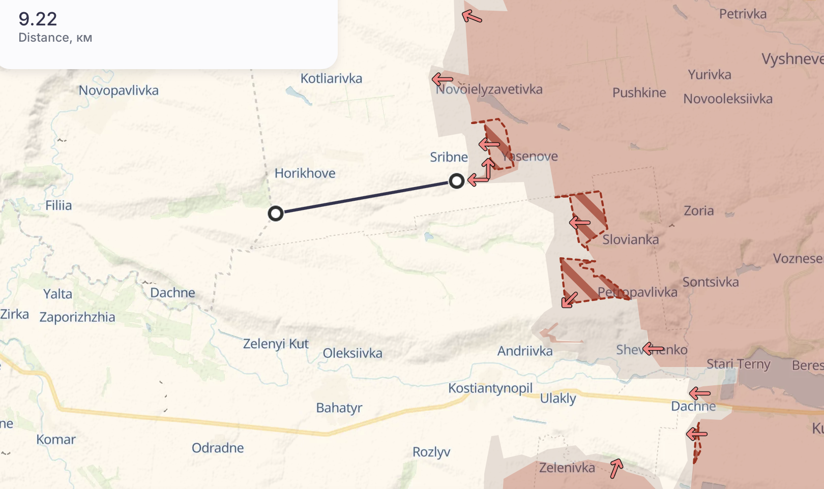 Также заметно, что между Покровском и Курахово россияне движутся и непосредственно к границе Днепропетровской области - со стороны Срибного и Новоандреевки. Там до границ региона осталось менее десяти километров. Куда могут россияне двинуться из Донбасса, мы разбирались здесь