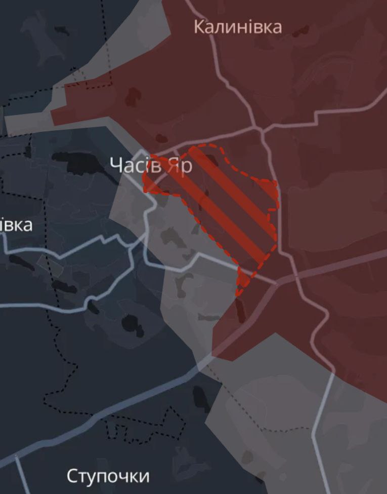 У российских войск крупное продвижение в южной части Часова Яра. Об этом свидетельствует карта украинского военного паблика Deep State.