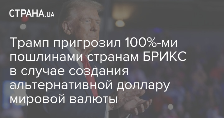 Президент США Дональд Трамп пригрозил 100%-ми пошлинами странам БРИКС, если они попытаются создать альтернативную доллару мировую валюту.