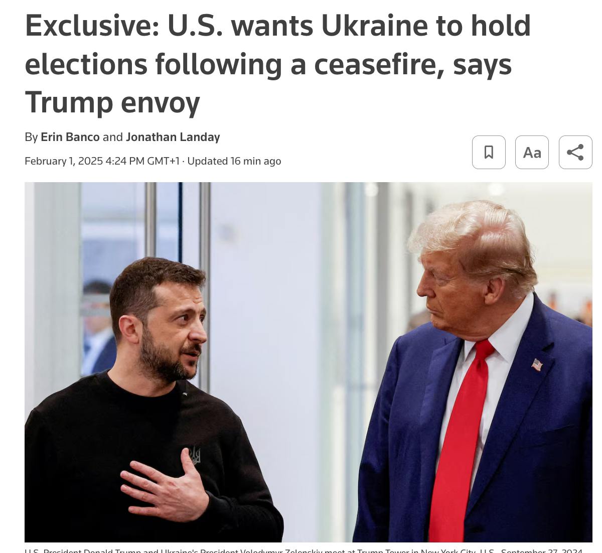 Вашингтон высказал пожелание, чтобы до конца 2025 года Киев провёл президентские выборы, особенно в случае достижения перемирия на фронте.