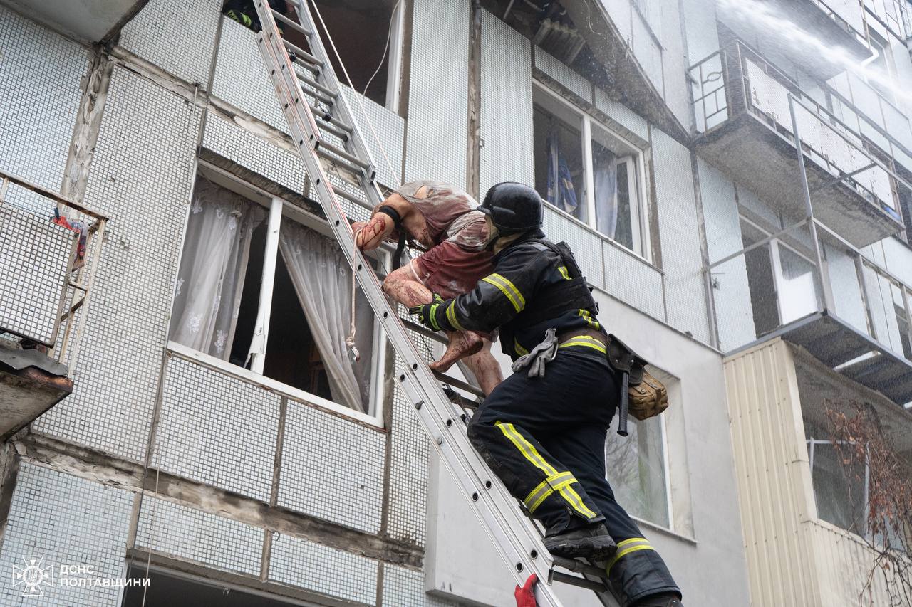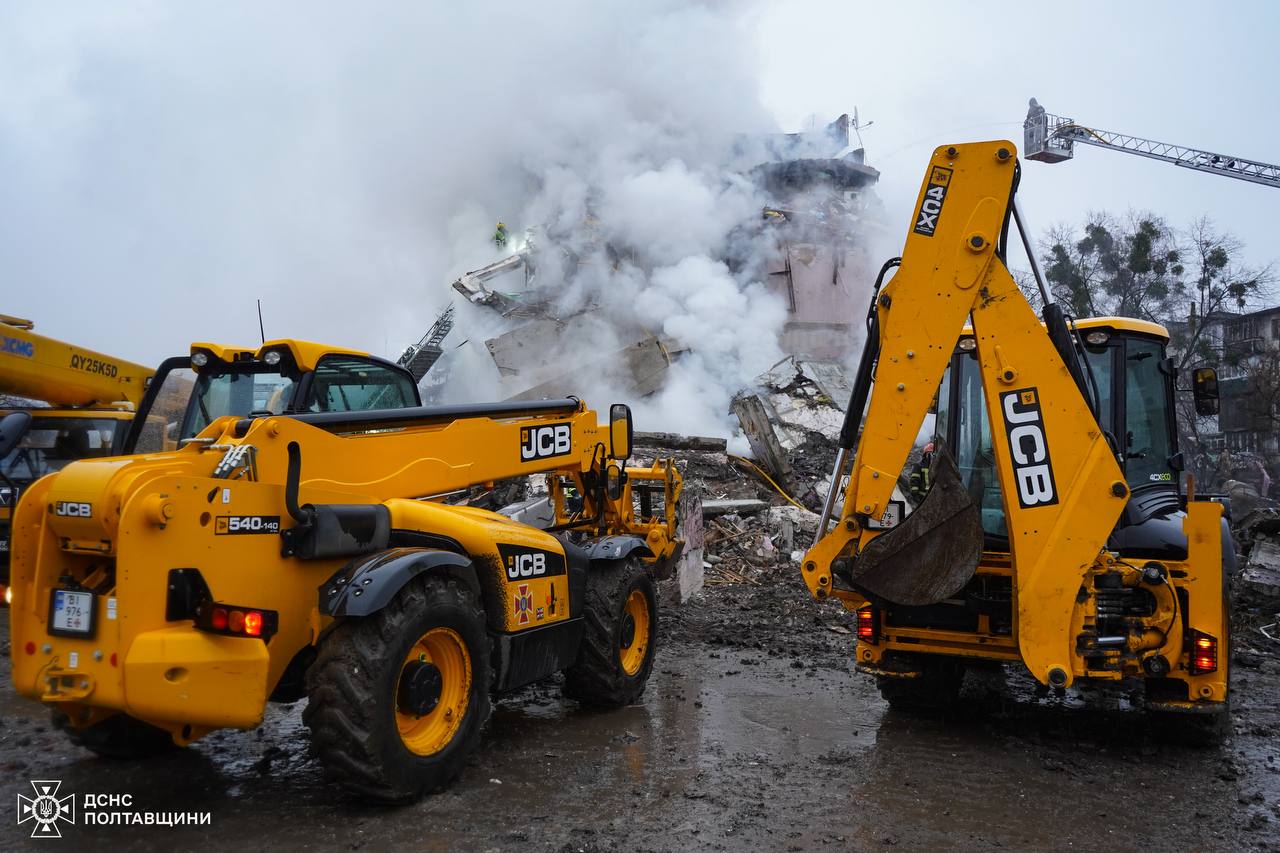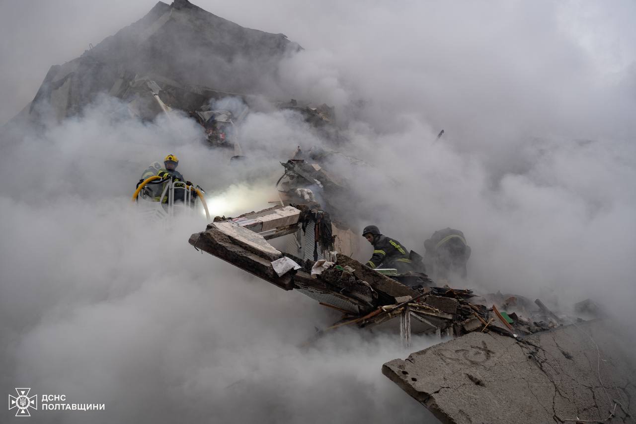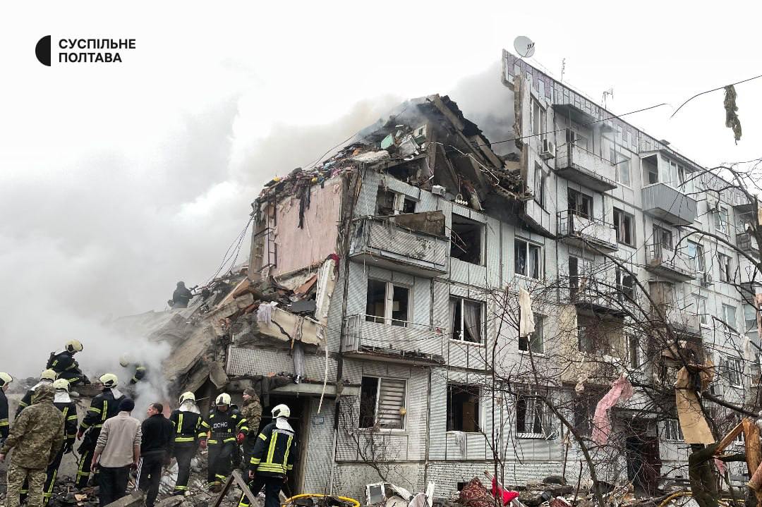 08:50 В Полтаве разрушен целый подъезд жилого дома вследстве атаки.