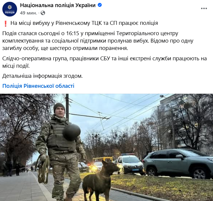 В Ровно прогремел взрыв в здании областного ТЦК. Есть погибший и раненые