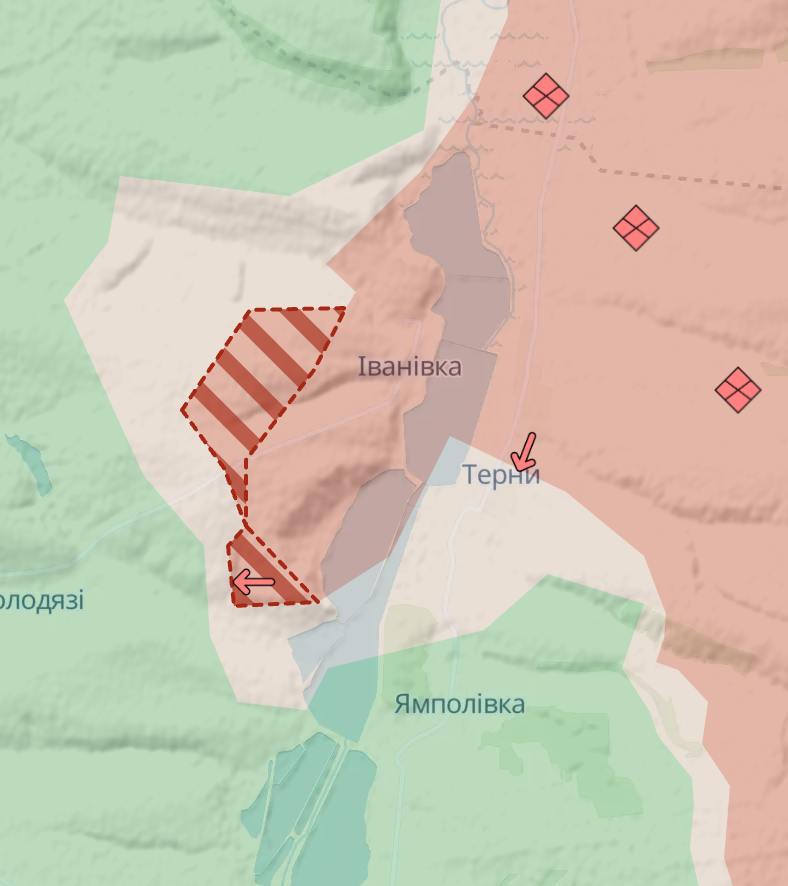 15.34 Армия РФ расширила свой плацдарм на правом берегу реки Жеребец в Ивановке, что на Лиманском направлении, продвигаясь в сторону Колодязей.