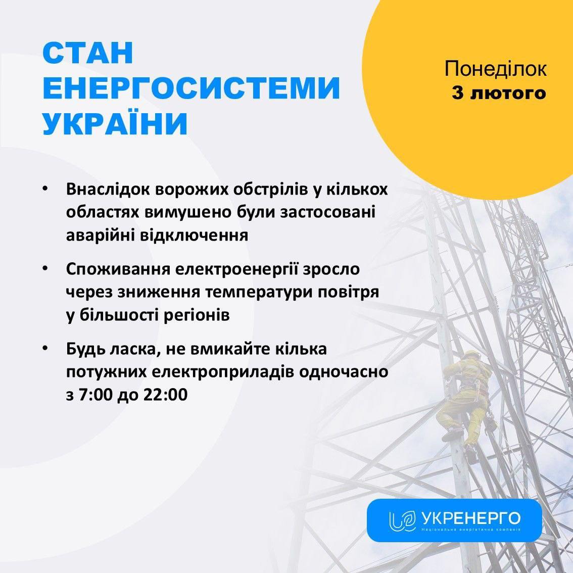 Об этом сообщает Укрэнерго.