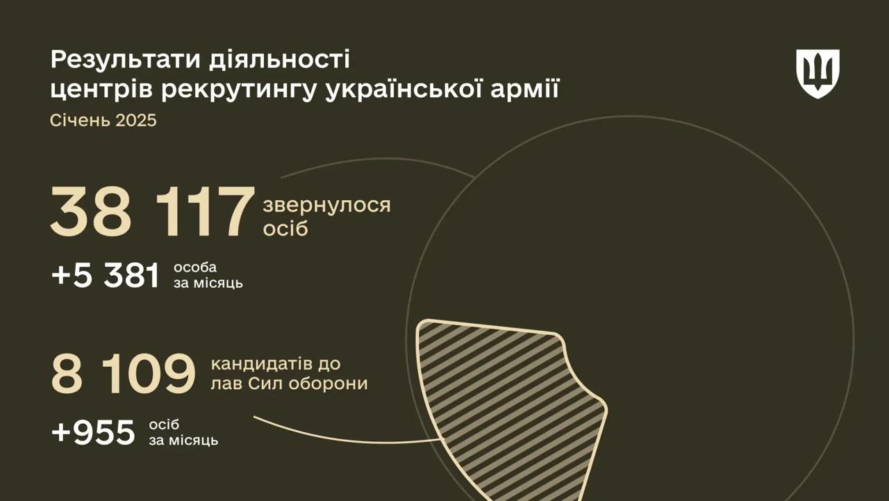"В январе 2025 года в центры обратилось 5 381 человек, что почти на 80% больше среднемесячного показателя прошлого года. В течение января количество кандидатов, начавших процесс вступления в армию, выросло на 955 человек и достигло 8 109", - говорится в сообщении.