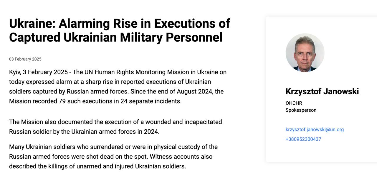 Как отметили в ООН, число казней пленных украинских военнослужащих со стороны РФ резко выросло.