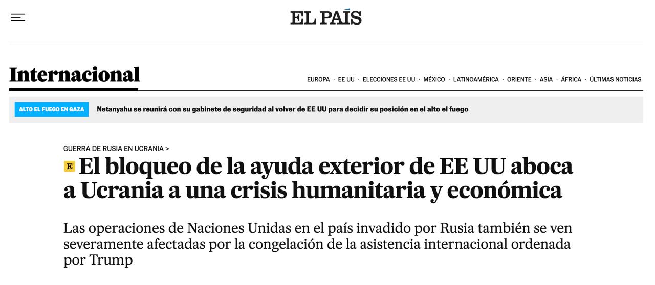 Кроме того, по данным источников издания El Pais, закрытие USAID повлияло и на многочисленные проекты ООН в Украине. Оказалось, что многие из них по большей части финансировались через это агентство Госдепа, например, связанные с защитой прав человека.