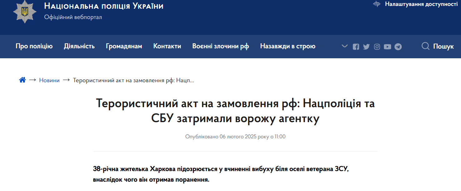 Жительница Харькова подозревается в совершении взрыва возле дома ветерана ВСУ, в результате чего он получил ранения.