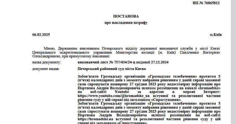 "Громадское" оштрафовали за невыполнение решения суда по иску Портнова