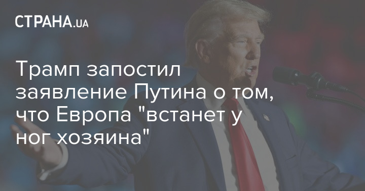 Президент США Дональд Трамп опубликовал ссылку на новость о заявлении президента РФ Владимира Путина о том, что Европа "встанет у ног хозяина".