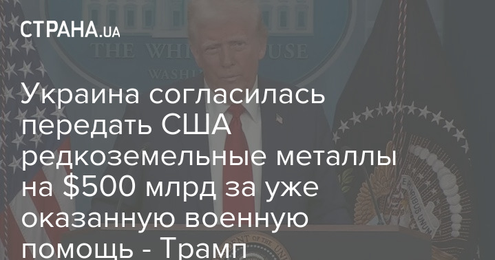 Украина согласилась передать США редкоземельные металлы на сумму 500 миллиардов долларов в качестве оплаты за военную помощь, которую Вашингтон уже предоставил Киеву.