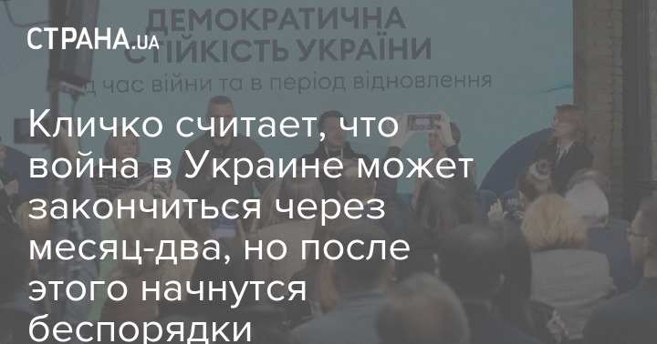 Такой прогноз дал мэр Киева Виталий Кличко на форуме "Демократическая устойчивость Украины во время войны и в период восстановления".