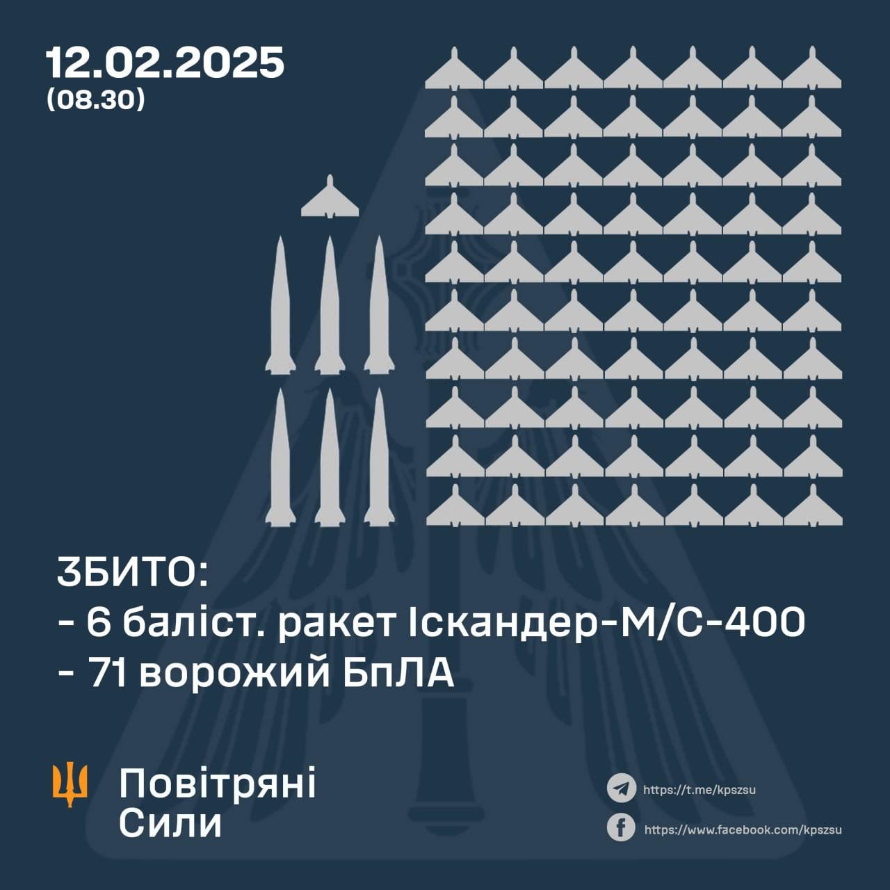 "В результате вражеской атаки пострадали Киевщина, Днепропетровщина (Кривой Рог), Сумщина, Полтавщина и Черниговщина", - сообщают Воздушные силы.