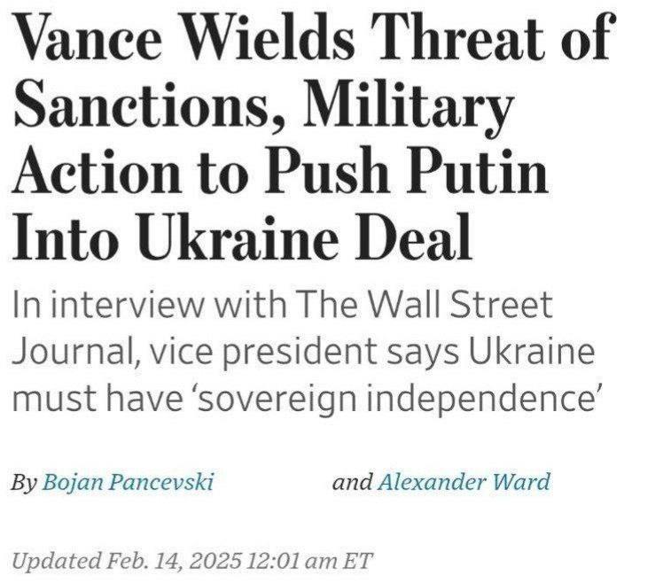 "Заявление вице-президента Вэнса о том, что США, в случае отказа РФ от предложенной Вашингтоном сделки, могут отправить в Украину свои войска, а также намеки на возможность передачи Украине ядерного оружия, в самой России, скорее всего, будут восприняты как чистый блеф накануне старта переговоров.