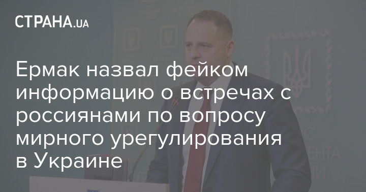 Глава Офиса президента (ОП) Украины Андрей Ермак назвал "фейками" информацию о прошедших или готовящихся встречах с россиянами по мирному урегулированию военных действий в Украине.