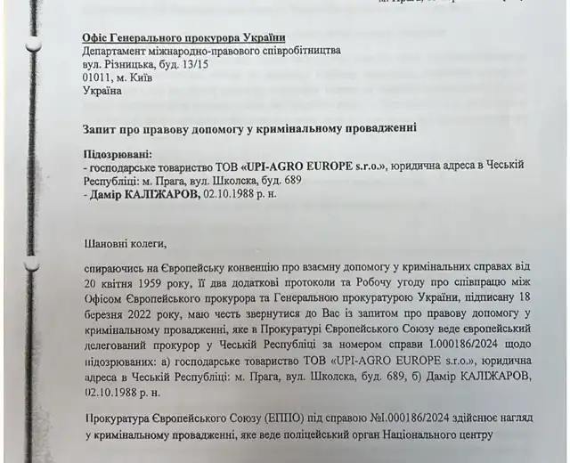 "Чешская Республика обратилась к Украине за правовой помощью в расследовании уголовного дела о возможном уклонении от уплаты налога чешской компанией "UPI-AGRO EUROPE s.r.o." и украинскими "Zoria Podillia Foods Company LLC" и "Podilya Foods Company LLC" украинского политика и бизнесмена Петра Порошенко", - говорится в статье.