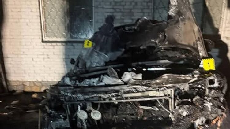 Сгоревшая машина журналистки. Фото: facebook.com/kryukova