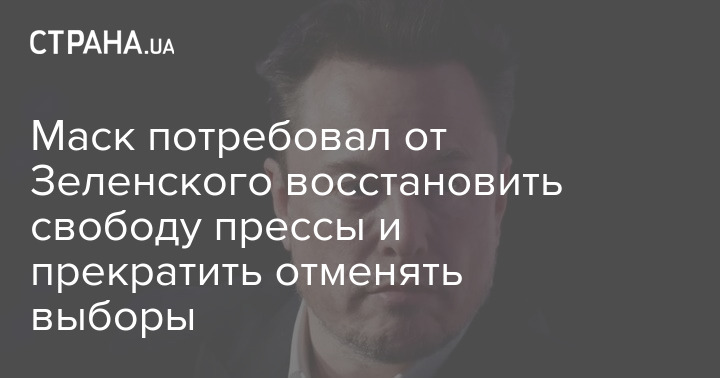 "Зеленский не может претендовать на то, чтобы представлять волю народа Украины, пока не восстановит свободу прессы и не прекратит отменять выборы", – заявляет Маск.