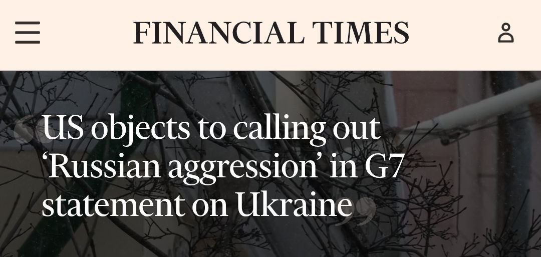 Неназванные западные чиновники рассказали, что США угрожают сорвать традиционную демонстрацию единства G7. Представители США выступили против фразы "российская агрессия" и подобных описаний, которые лидеры G7 использовали с 2022 года.
