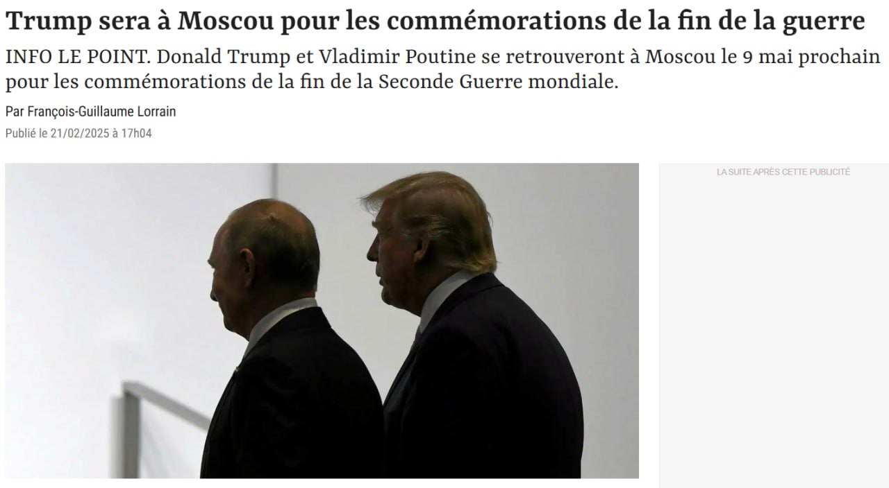 "Мирные переговоры, согласно плану Келлога, завершатся 9 мая. И таким образом 9 мая 2025 года станет днём их триумфа", - пишет Le Point.