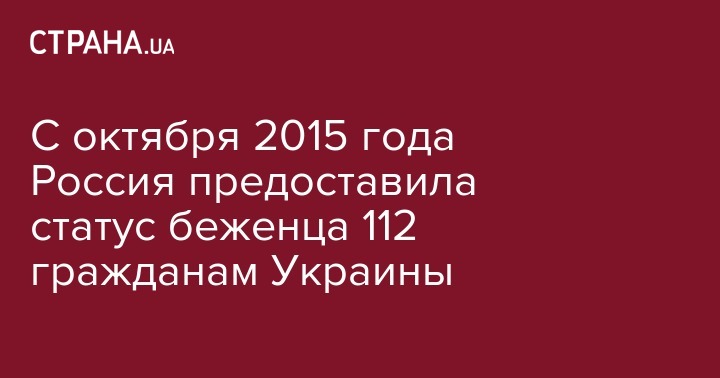 С 2015-го по октябрь 2016-го года Россия официально предоставила статус беженца 112 гражданам Украины.