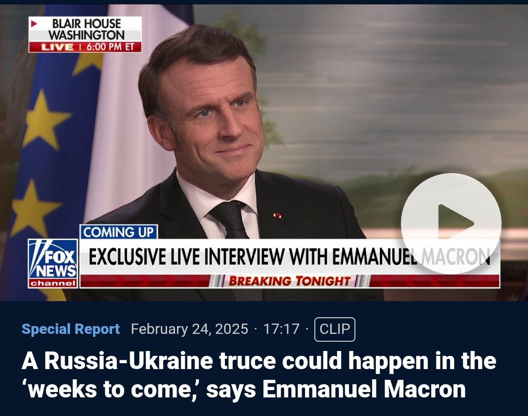 8.00 Макрон надеется, что перемирие между Украиной и Россией может наступить в ближайшие недели.