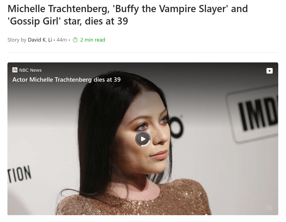 Умерла звезда сериалов "Баффи - победительница вампиров" и "Сплетница" Мишель Трахтенберг.