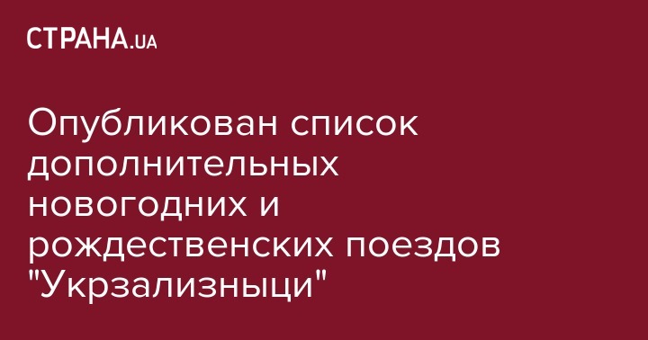 Опубликован список дополнительных новогодних и рождественских поездов "Укрзализныци"